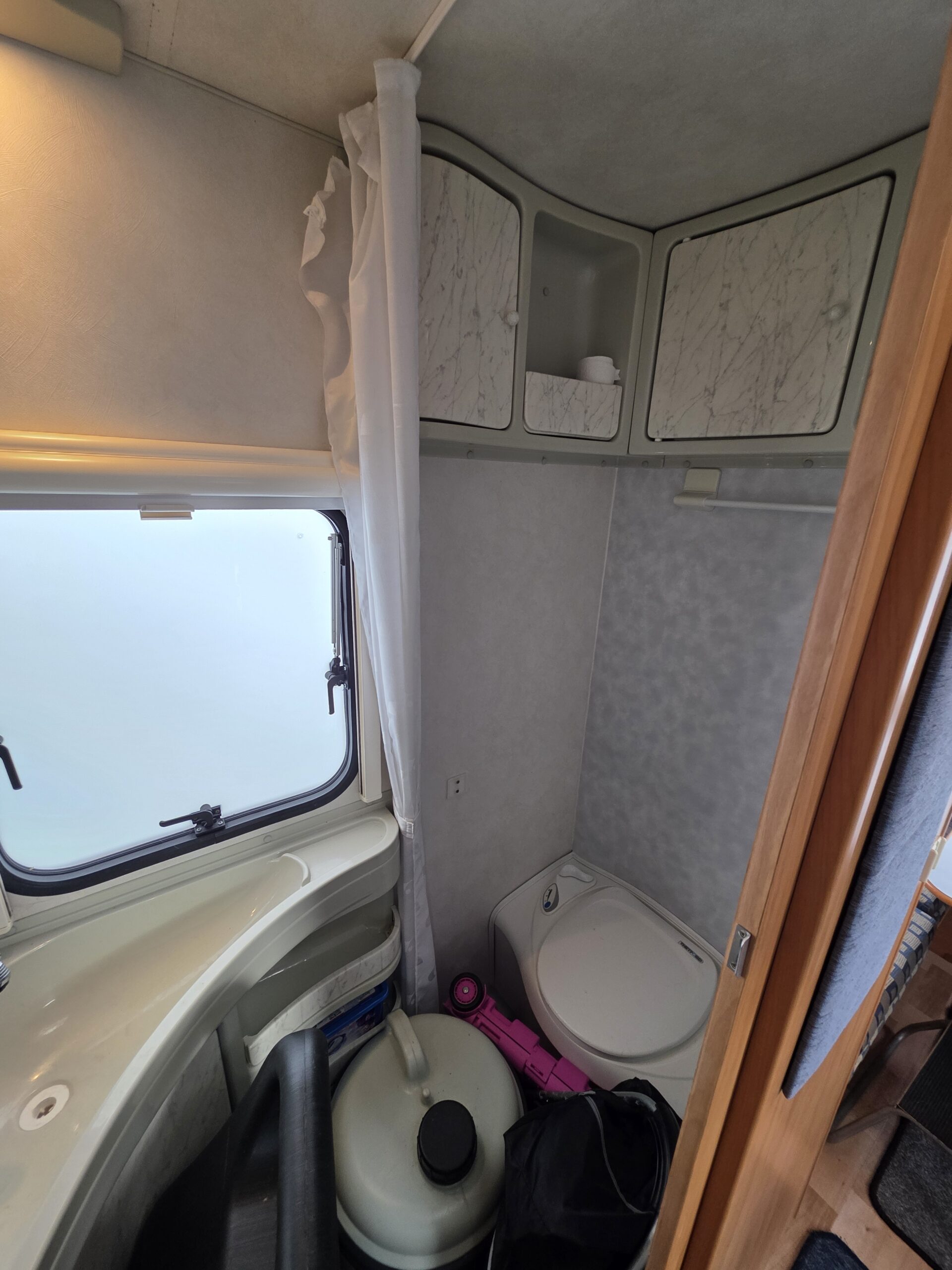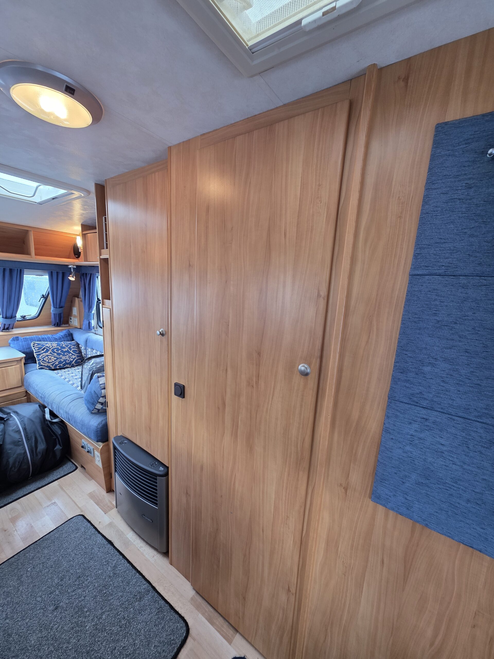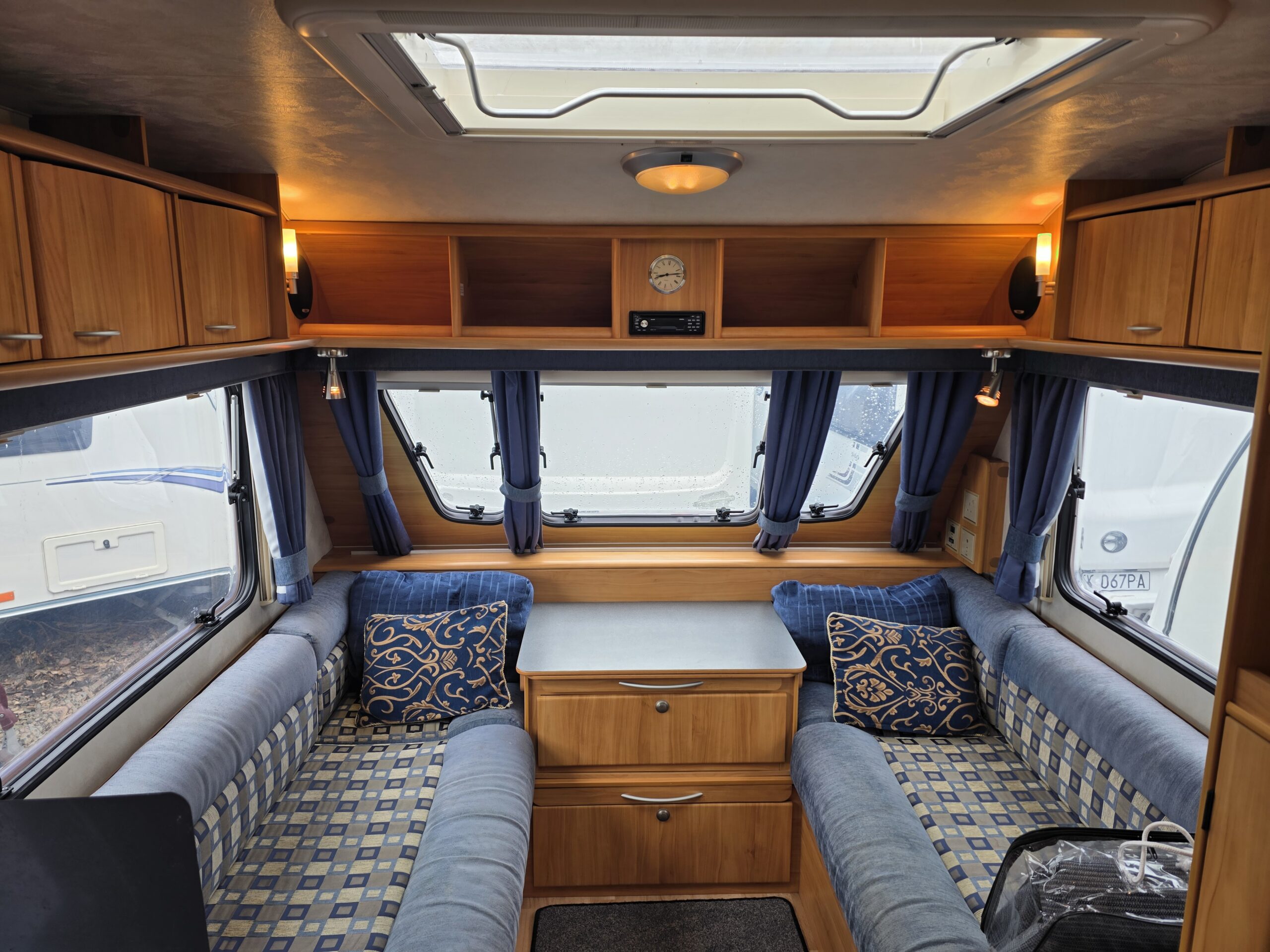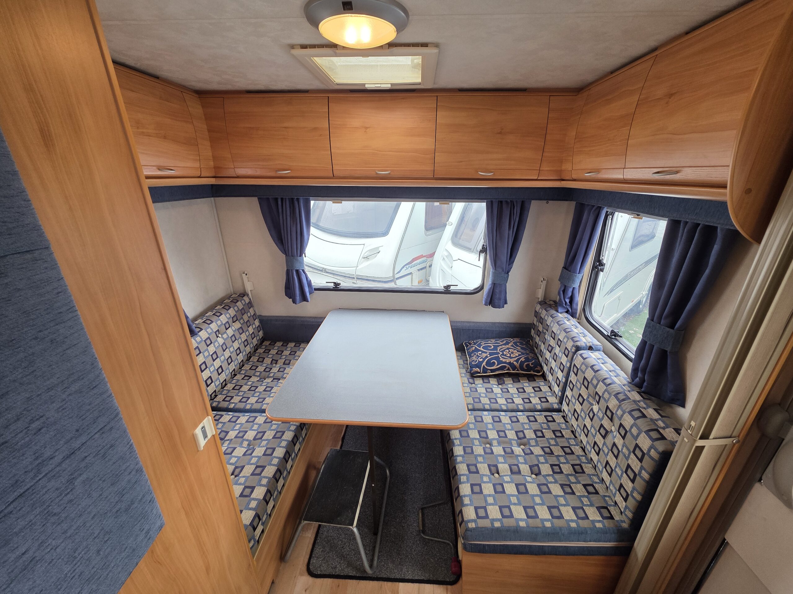Przyczepa bardzo zadbana na zewnątrz i w środku, MEBLE TAPICERKA W SUPER STANIE. Przyczepa z układem 1 sypialnia na max 3 osoby-2 sypialnia dwa pojedyncze łóżka z możliwością rozłożenia na jedno duże + toaleta na boku przyczepy z kabina prysznicową jeden z najbardziej poszukiwanych układów dla 5 osób .