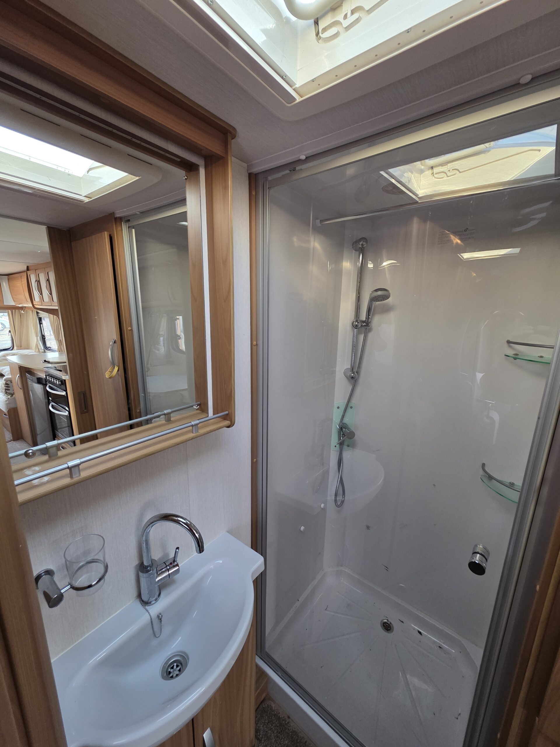 Przyczepa bardzo zadbana na zewnątrz i w środku, MEBLE TAPICERKA W SUPER STANIE. Przyczepa z układem 2 osobne sypialnie + osobna toaleta na końcu przyczepy,osobna kabina prysznicowajeden z najbardziej poszukiwanych układów w przyczepię. Ponadto przyczepa posiada motor mover,system napędu bardzo ułatwiający parkowanie lub samo zaczepienie przyczepy do auta.