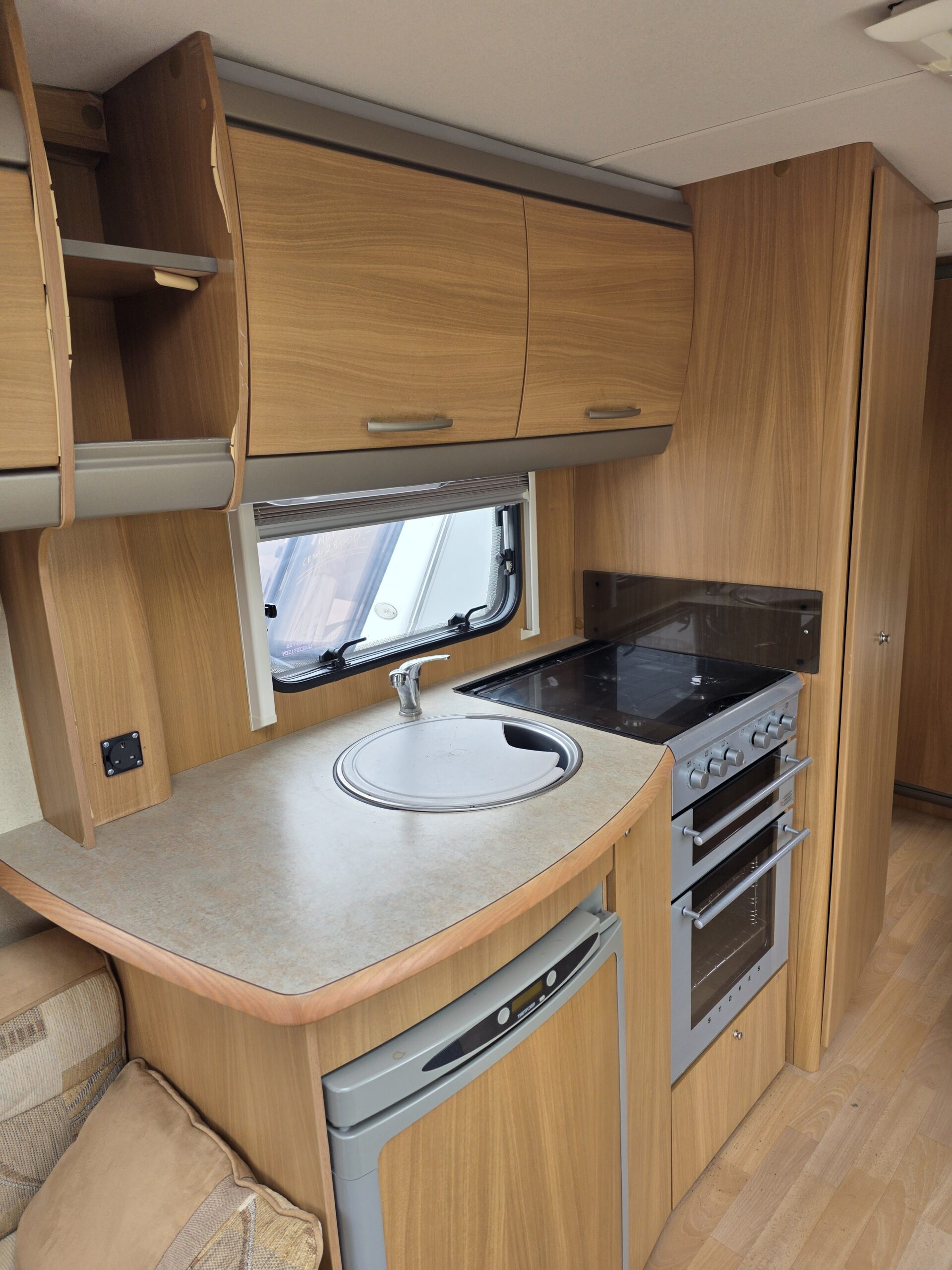 Cena 32,000 jest dlatego tak niska jak za 2008 rok ponieważ na meblach miejscami odkleja się okleina co widać na zdjęciach nie wpływa to negatywnie na użytkowanie przyczepy,przyczepa sucha sprawna nie była zalana ta okleina jest wadą fabryczną w tych modelach przyczepy