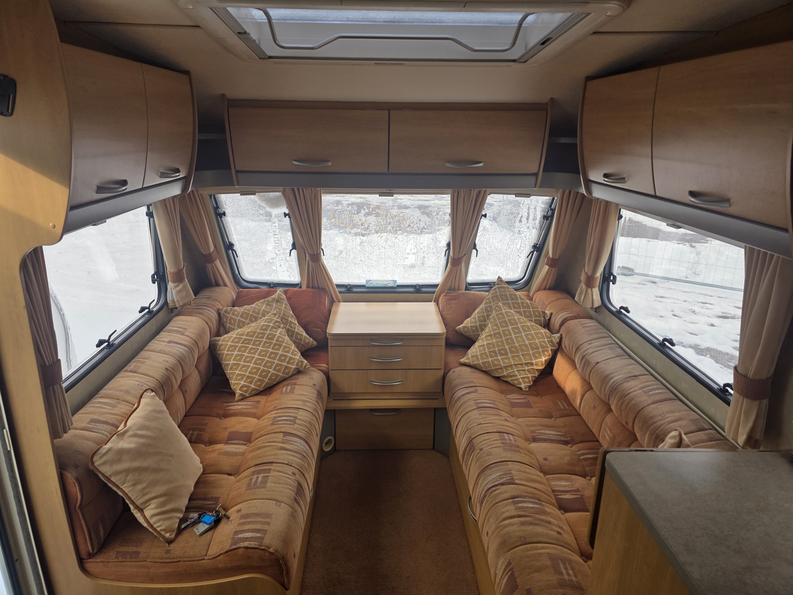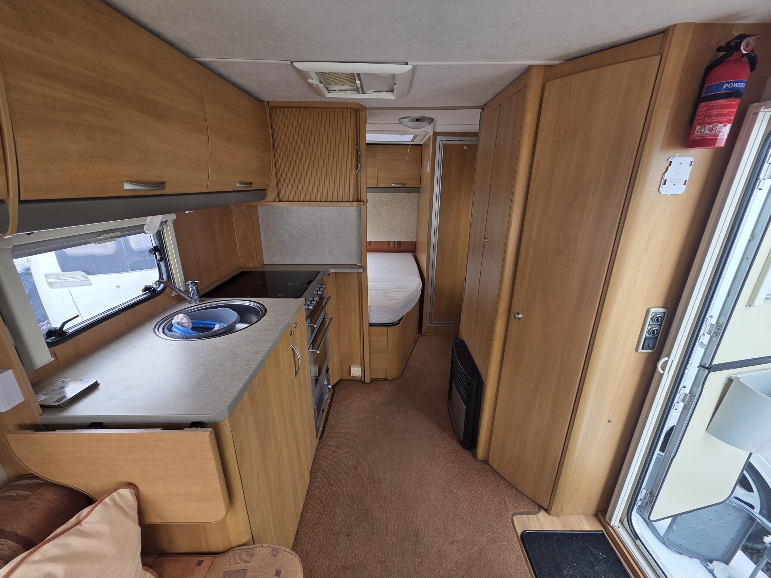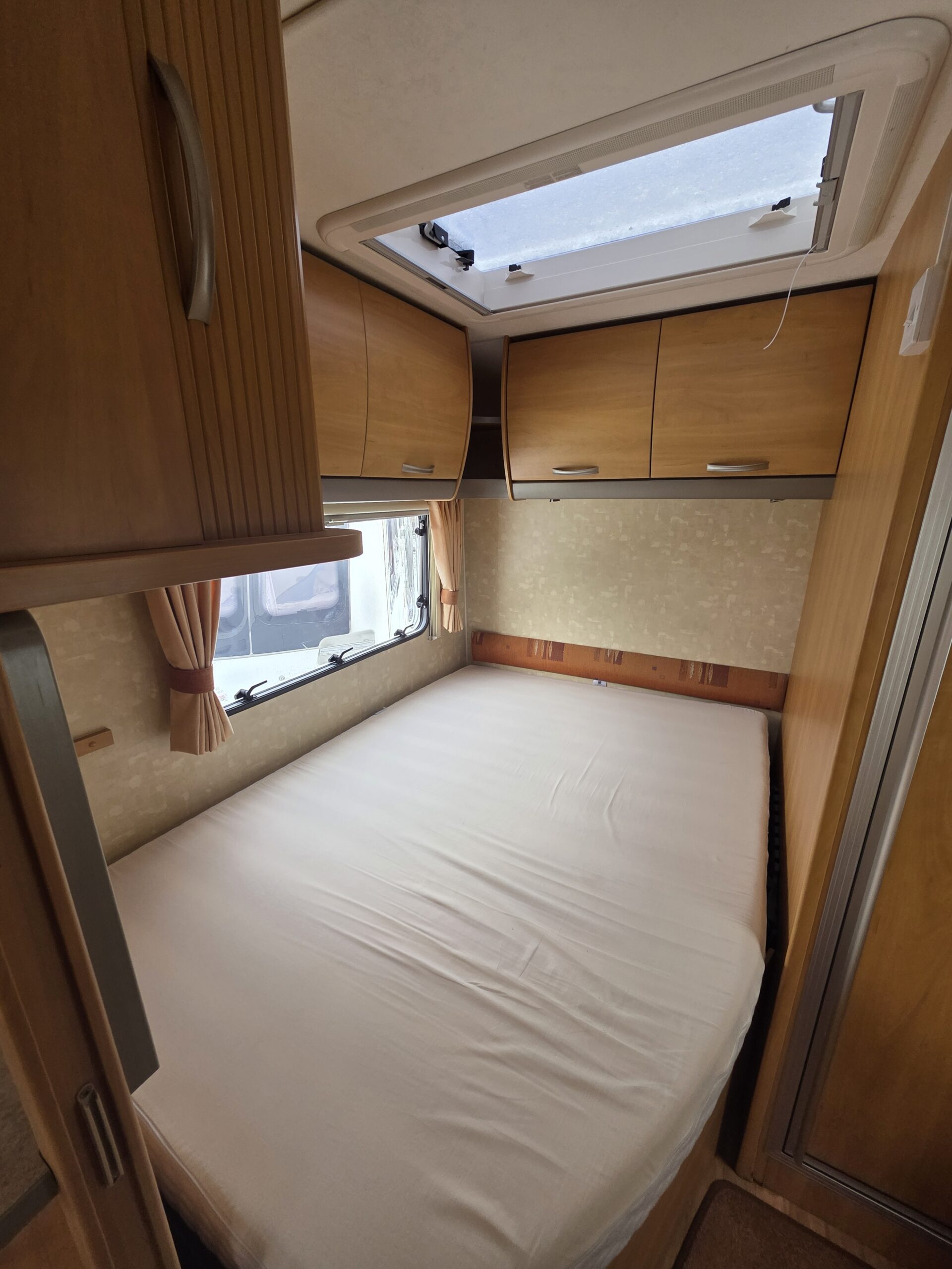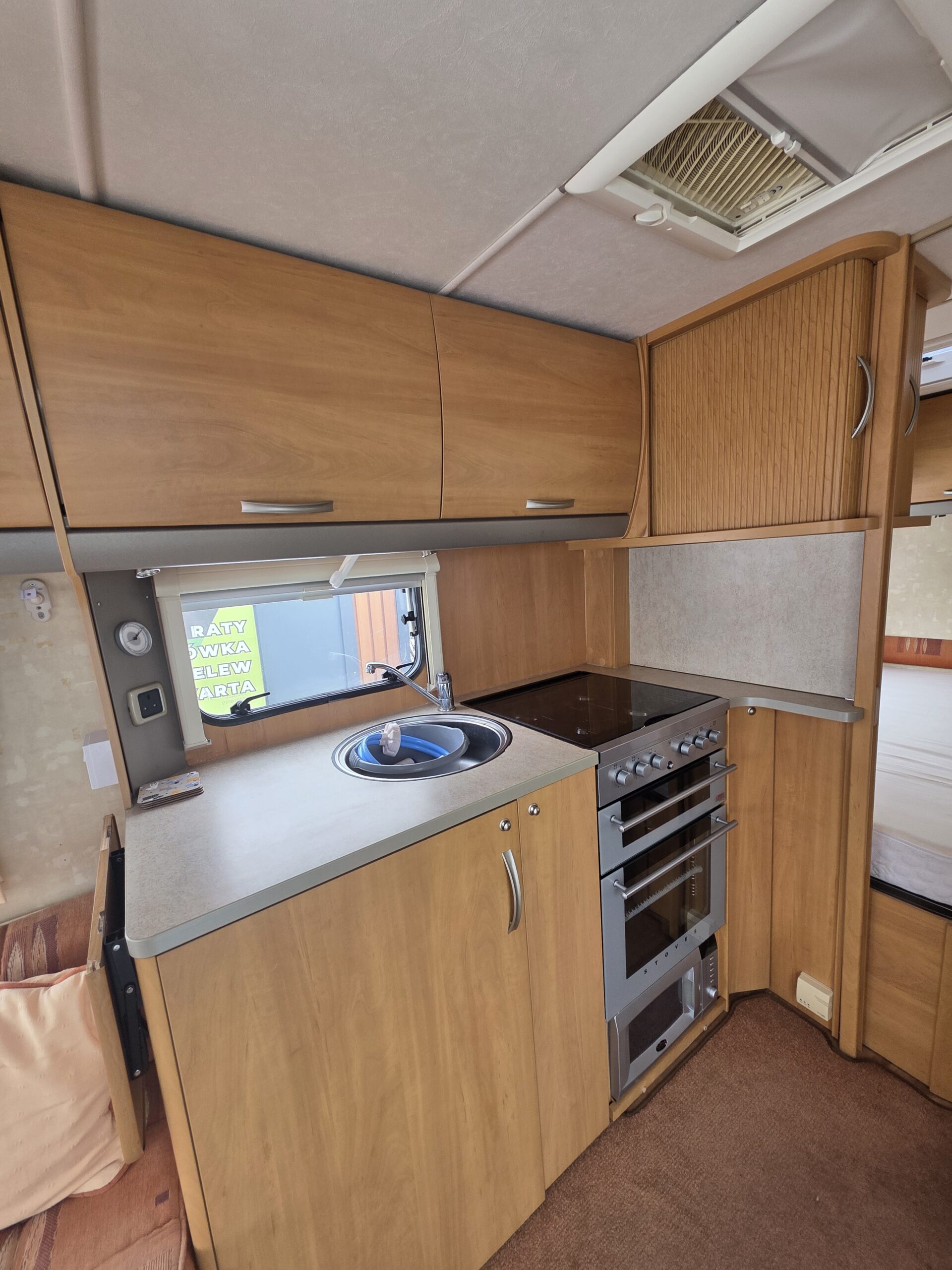 Przyczepa bardzo zadbana na zewnątrz i w środku, MEBLE TAPICERKA W DOBRYM STANIE. Przyczepa z układem 2 osobne sypialnie + osobna toaleta na końcu przyczepy,osobna kabina prysznicowa -z tyłu łóżko małżeńskie (cała tylna część zamykana ścianką)