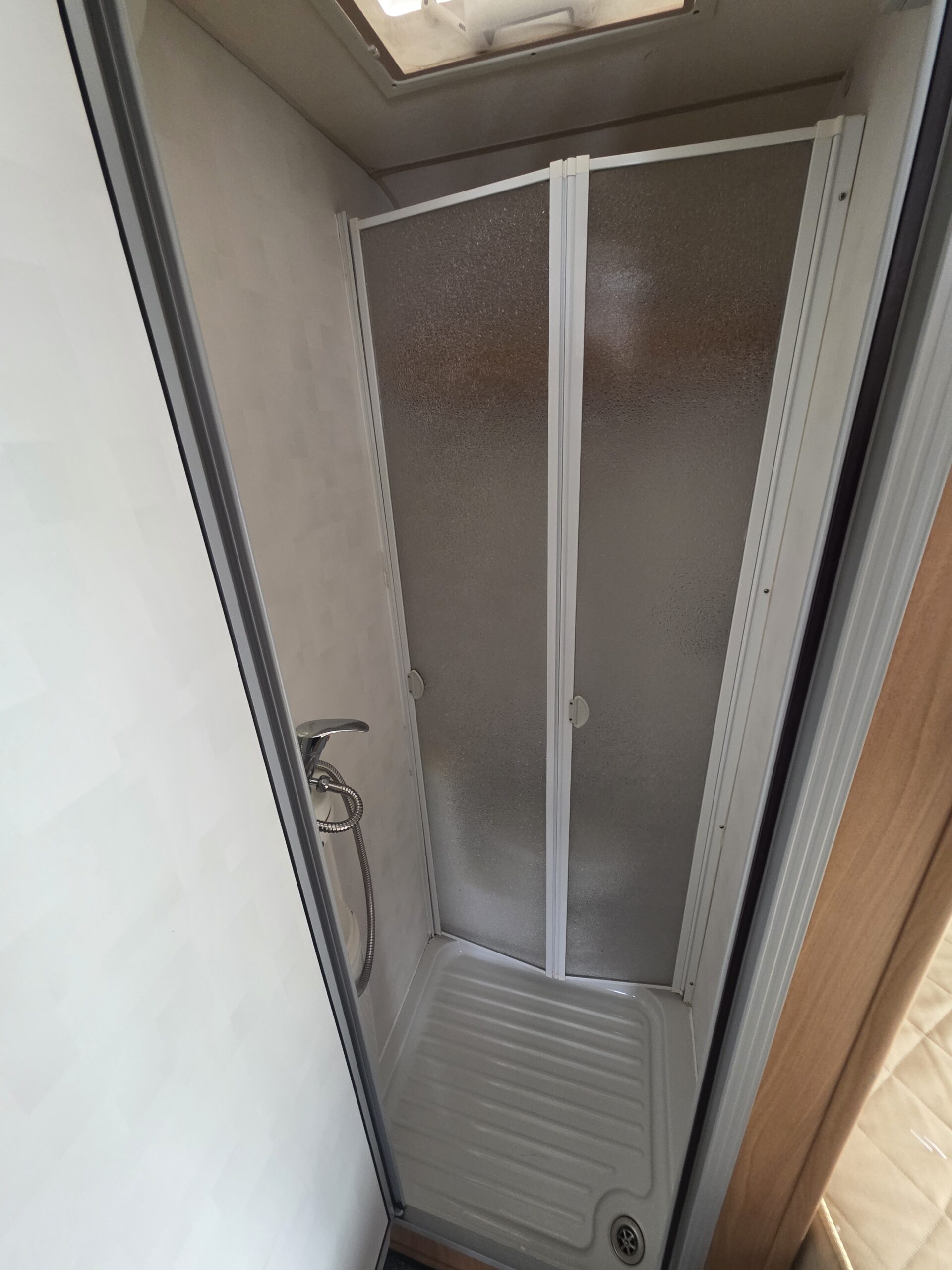Przyczepa bardzo zadbana na zewnątrz i w środku, MEBLE TAPICERKA W DOBRYM STANIE. Przyczepa z układem 2 osobne sypialnie + osobna toaleta na końcu przyczepy,osobna kabina prysznicowa -z tyłu łóżko małżeńskie (cała tylna część zamykana ścianką)